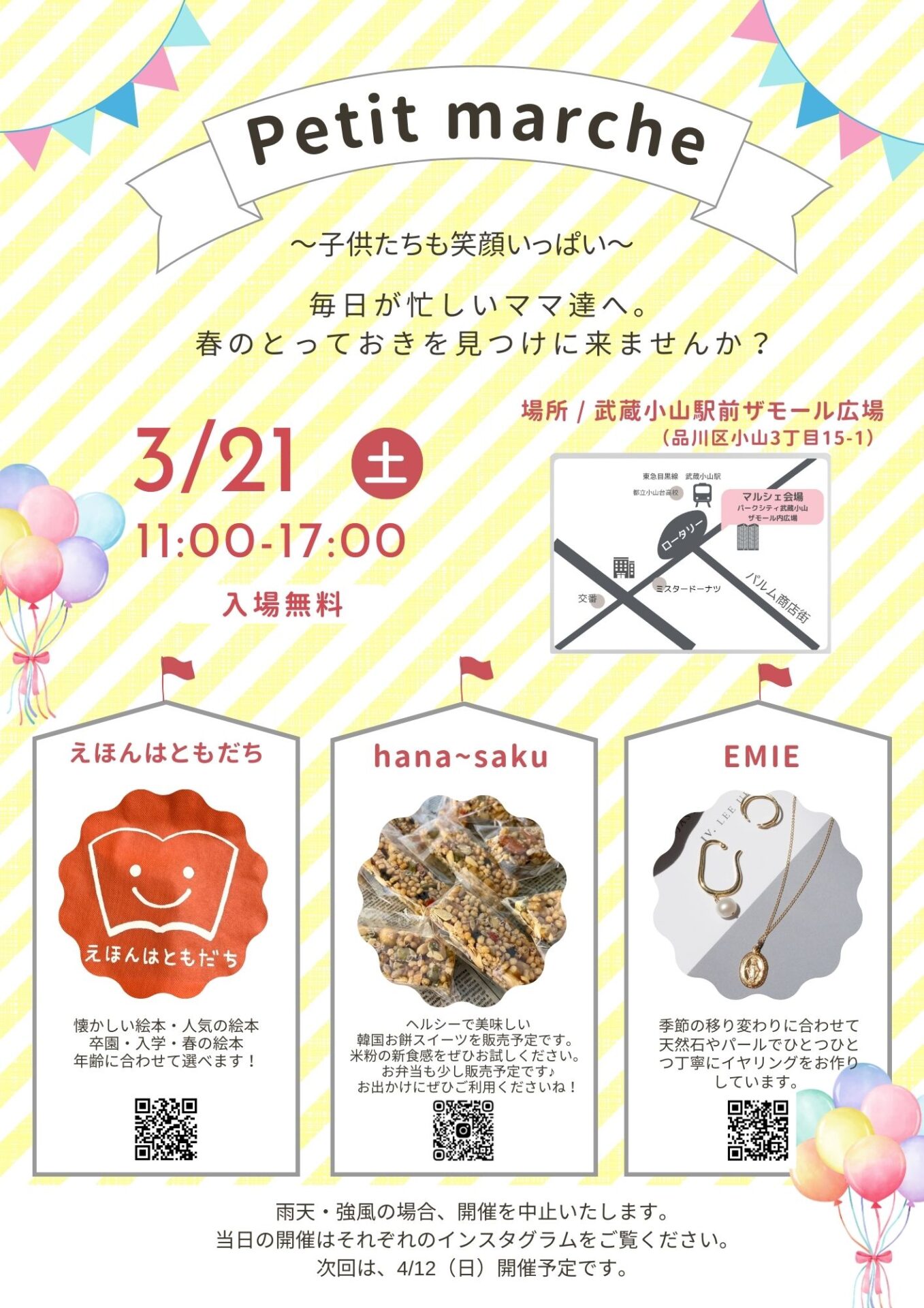 毎日忙しいママ達へ。 武蔵小山駅前ザモール広場にて、春の訪れを楽しむ小さなマルシェ